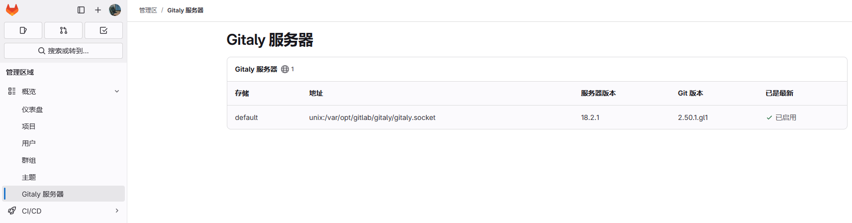 使用 root 用户登录,切换到 管理员 操作页面,打开 【概览】->【Gitaly服务器】页面查看。